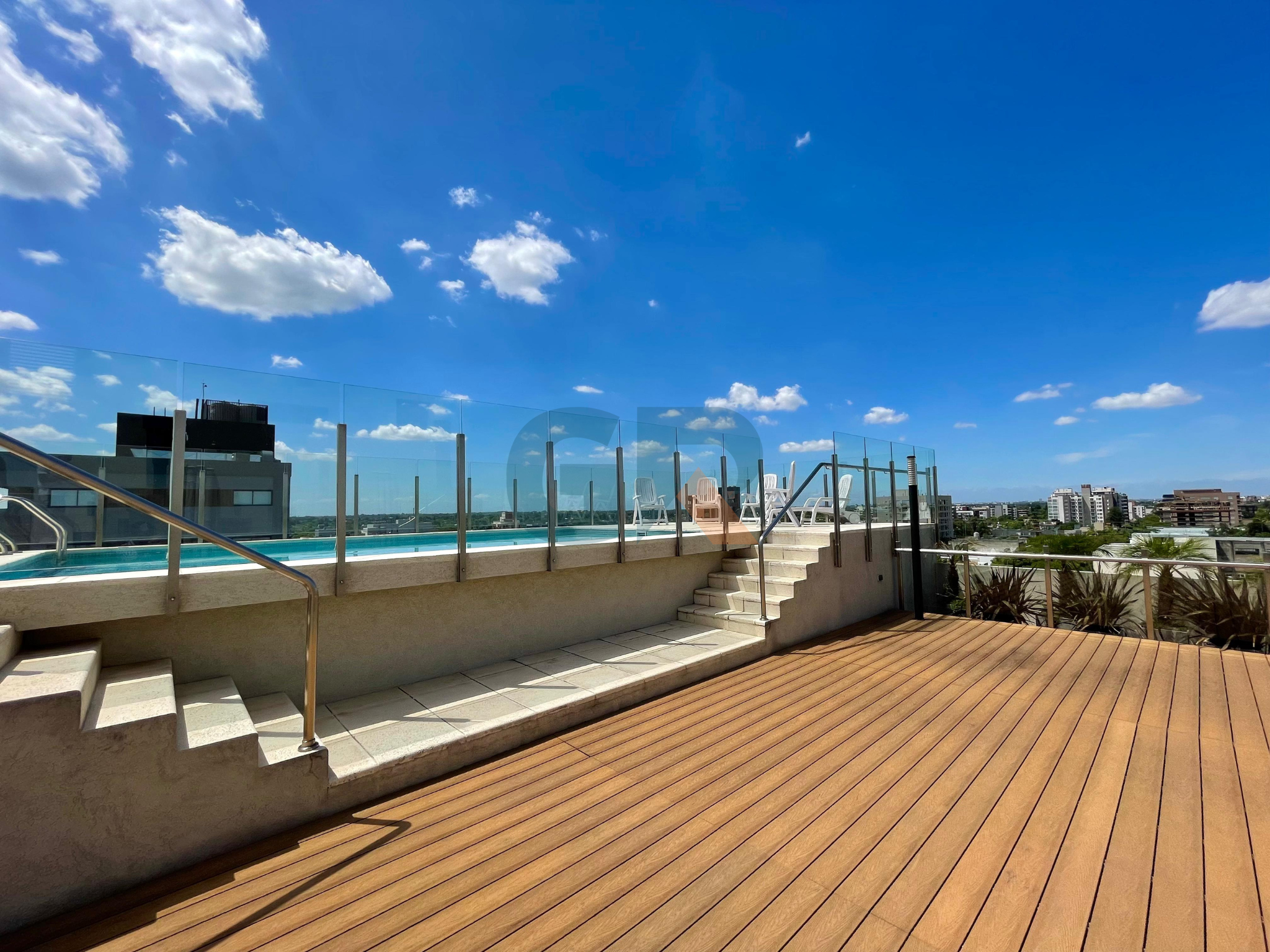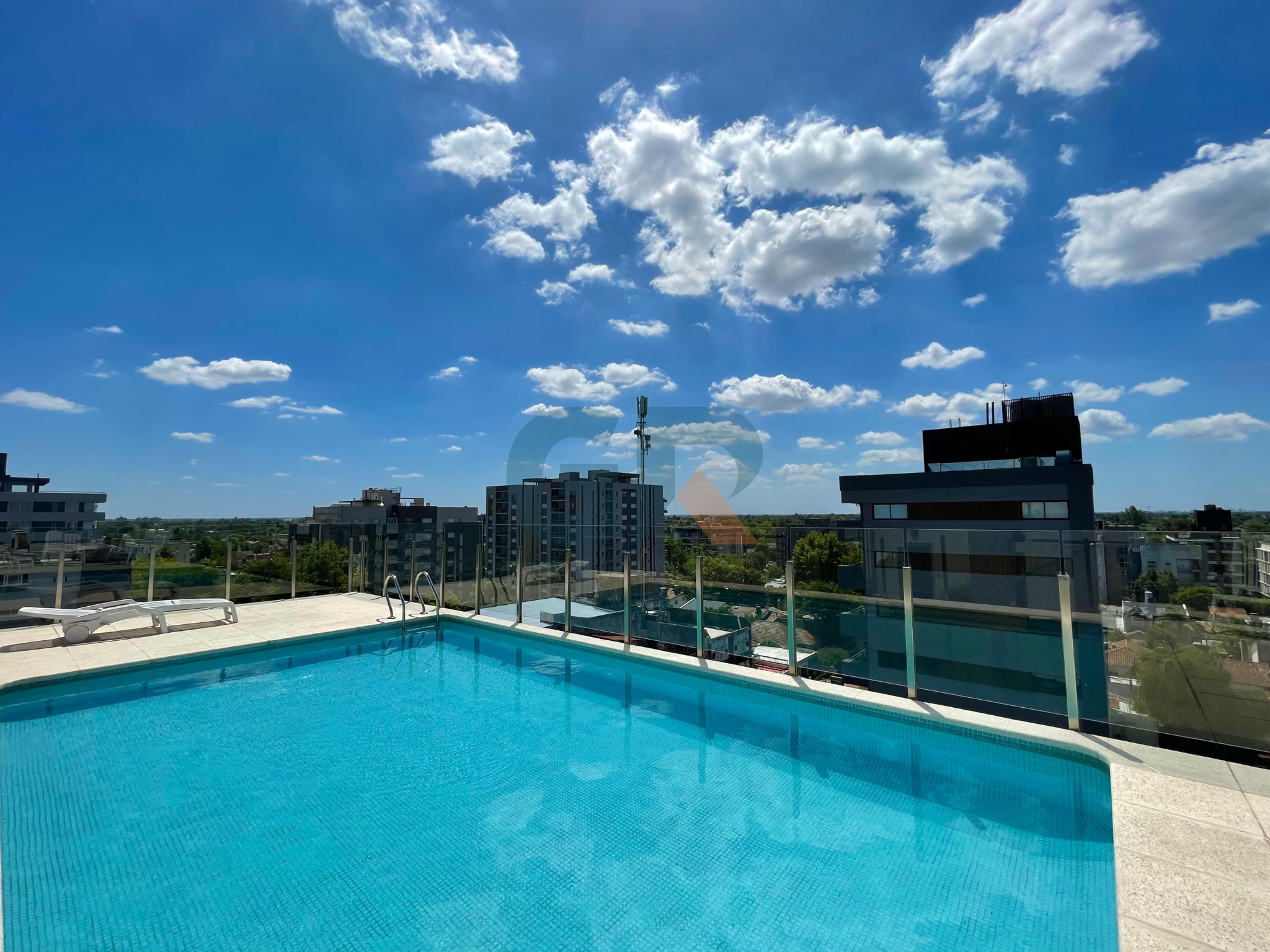 El edificio cuenta con portería, sala de espera, gimnasio, salón de usos múltiples, jardin con parrilla y galería, lavadero, y piscina con solárium en azotea.